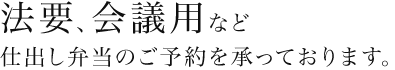 ご自宅での法要や、会議、会合など沢山の人が集まる場面に欠かせないのがお弁当。料理内容、ご予算、シーンなど、ご相談頂ければ出来る限り対応させて頂きます。